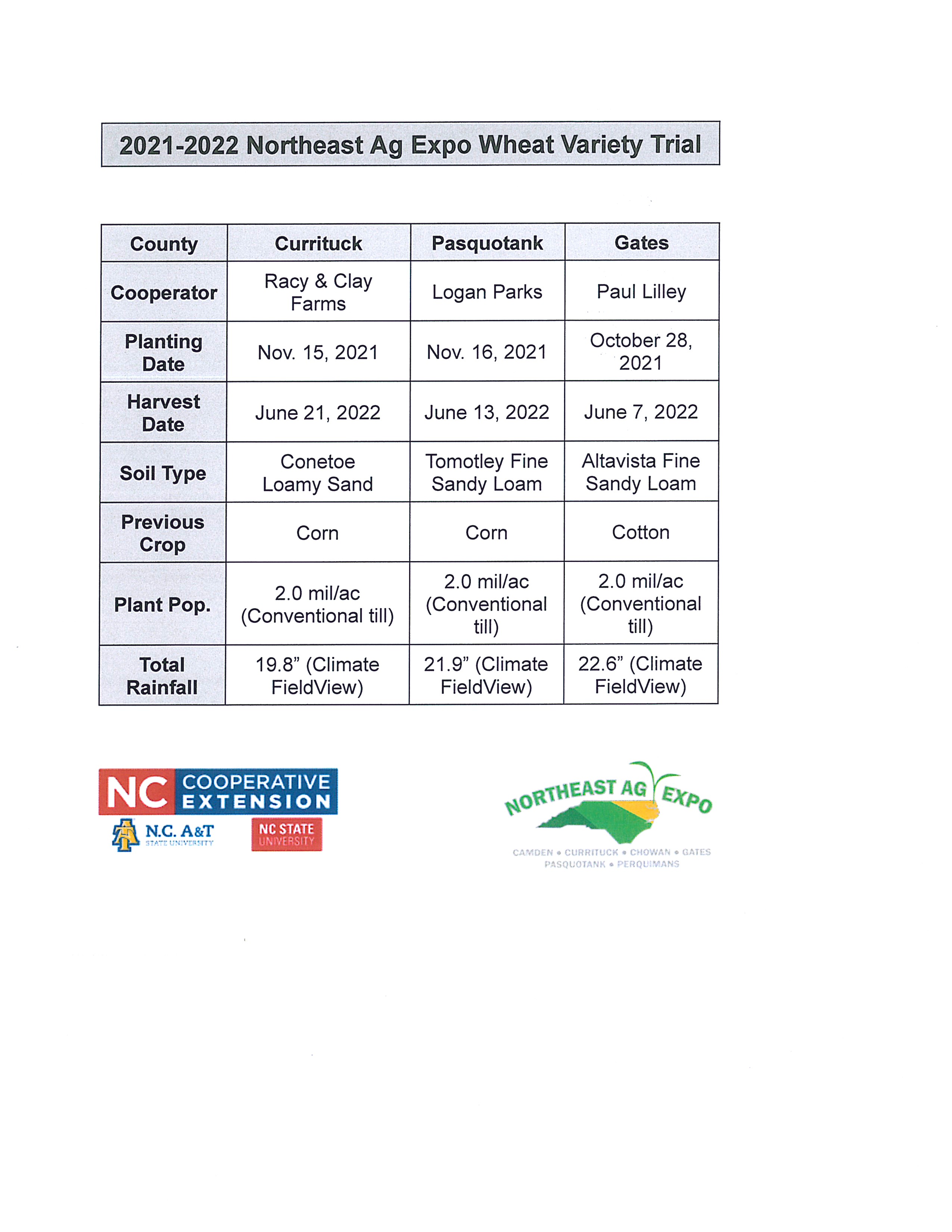 2021-2022 Northeast Ag Expo Wheat Variety Trial