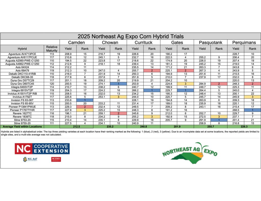 2025 Northeast Ag Expo Corn Variety Trial Data