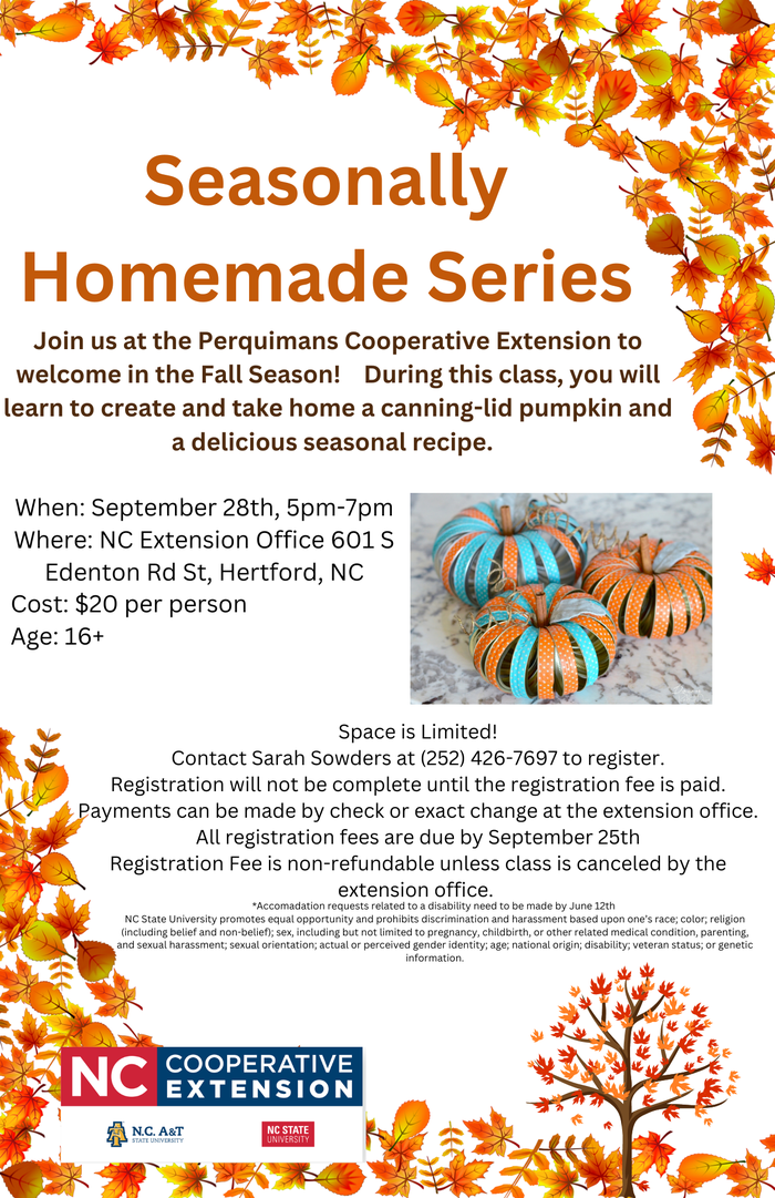 Join N.C. Cooperative Extension, Perquimans County Center for our new series Seasonally Homemade!